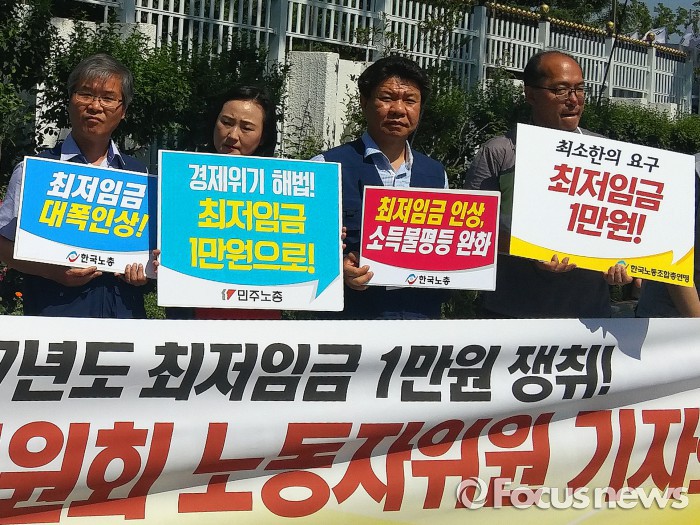(서울=포커스뉴스) 2일 최저임금위원회가 2차 전원회의를 열고 본격적으로 내년도 최저임금안에 대한 논의를 시작할 예정인 가운데 노동자 단체가 '최저임금 1만원 인상안'을 관철하겠다는 의지를 밝혔다.