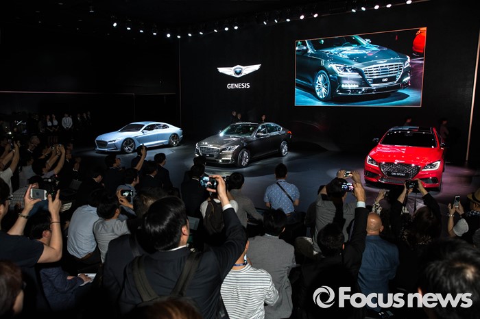 (부산=포커스뉴스) 2일 오전 부산 해운대구에 위치한 벡스코에서 열린 '2016 부산국제모터쇼'에 현대의 프리미엄 브랜드 '제네시스' 프리젠테이션이 진행되고 있다.