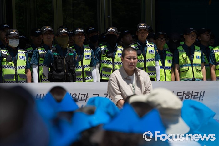 (서울=포커스뉴스) 2일 오후 서울 중구 서울시청 정문 앞에서 장애인부모연대원들이 발달장애인 정책수립을 촉구하며 삭발식을 하고 있다.