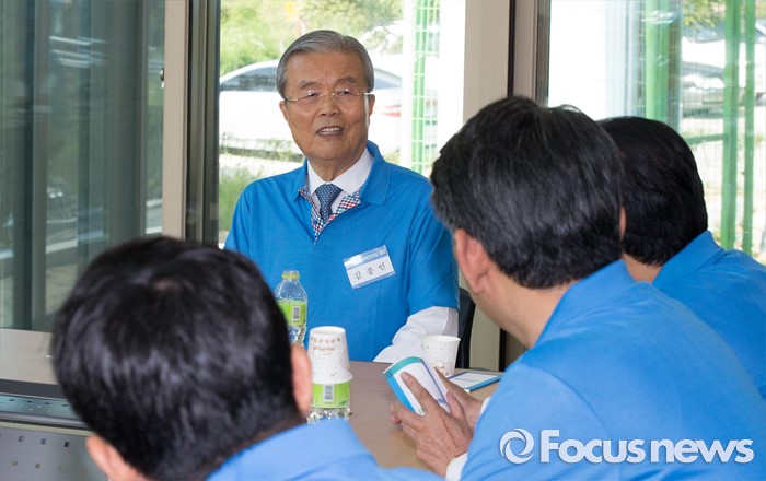 (괴산=포커스뉴스) 김종인 더불어민주당 비대위 대표가 1일 오후 충북 괴산 성불산자연휴양림에서 열린 충북도당 핵심당직자 워크숍에 참석, 총선 출마자 간담회에서 대화를 하고 있다.