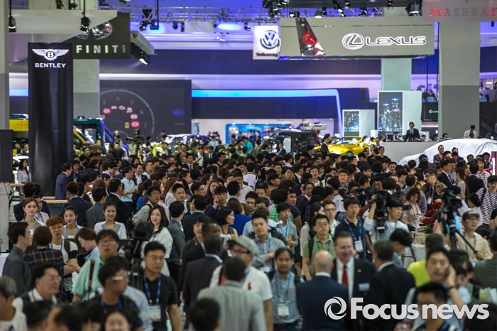 (부산=포커스뉴스) 2일 오전 부산 해운대구에 위치한 벡스코에서 열린 '2016 부산국제모터쇼'에서 관계자 및 시민들이 행사를 관람하고 있다.