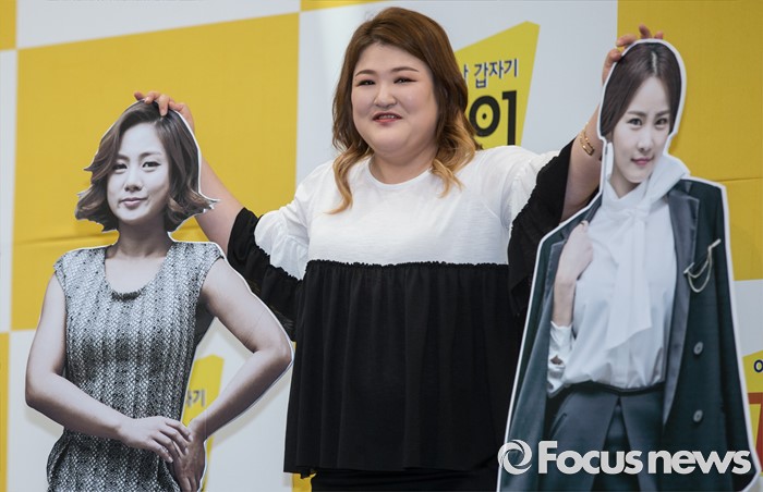 (서울=포커스뉴스) 2일 오전 서울 영등포구 KBS신관 웨딩홀에서 열린 KBS새 예능 프로그램 '어느날 갑자기 외.개.인' 제작발표회에 참석한 개그우먼 이국주가 포토타임을 갖고 있다.