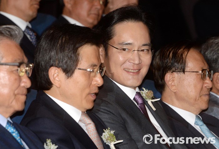 (서울=포커스뉴스) 1일 오후 서울 중구 호암아트홀에서 열린 제26회 호암상 시상식에 참석한 황교안(왼쪽) 국무총리와 이재용 삼성전자 부회장이 대화하고 있다.