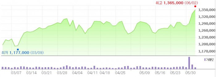 이날 삼성전자 주가는 장중 한때 2.40% 오른 136만5000원을 기록, 연중 최고가를 다시 경신했다. 전날에도 3.17% 오른 133만3000원에 거래를 마치며 연중 최고가를 썼다.