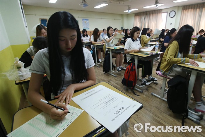 (서울=포커스뉴스) 2일 오전 서울 영등포구 여의도여자고등학교에서 고3 학생들이 2017학년도 대학수학능력시험 모의고사를 치르고 있다.