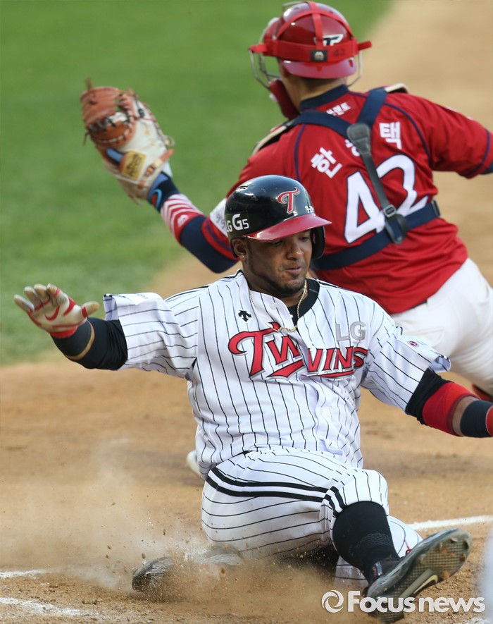 홈에서 슬라이딩하는 LG 히메네스