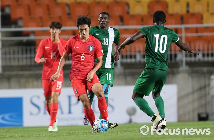 (수원=포커스뉴스) 2일 오후 경기 수원월드컵경기장에서 열린 2016 4개국 올림픽국가대표 축구대회 대한민국과 나이지리아의 경기에서 대한민국 박용우가 드리블을 하고 있다.