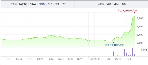 일신바이오는 3일 오전 9시21분 전일 대비 5.53%(215원) 상승한 4105원에 거래되고 있다. 일신바이오는 1일과 2일 매수세가 몰리면서 5.83%, 29.88%의 상승폭을 기록했다.