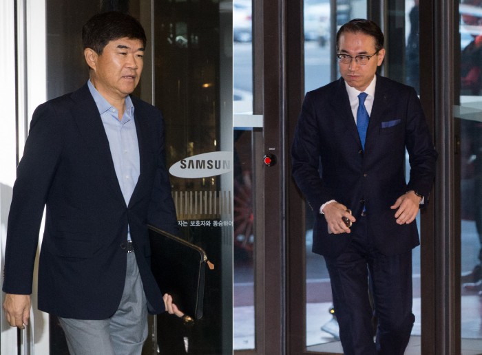 한국거래소는 이날 삼성전자에 삼성SDS 솔루션부문 합병 등 추진 검토 보도에 대한 조회공시를 요구했다. 답변시한은 이날 오후 6시까지다.정유성 삼성SDS 사장과(왼쪽) 홍원표 삼성SDS 사장.<사진=포커스뉴스>