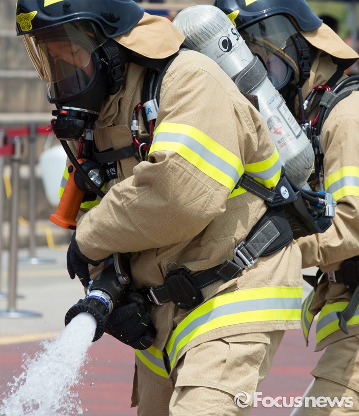 (청주=포커스뉴스) 3일 오전 충북 청주 무심천시민체육공원에서 열린 충북소방기술경연대회에 참가한 소방대원들이 기량을 겨루고 있다.