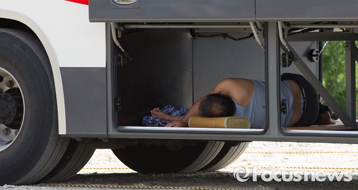 (세종=포커스뉴스) 최고 기온이 30도 가까이 오르며 초여름 날씨를 보인 3일 오후 세종시 정부세종청사 주차장에서통근버스 기사들이 트렁크에서 더위를 피해 휴식을 취하고 있다.