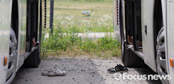 (세종=포커스뉴스) 최고 기온이 30도 가까이 오르며 초여름 날씨를 보인 3일 오후 세종시 정부세종청사 주차장에서통근버스 기사들이 트렁크에서 더위를 피해 휴식을 취하고 있다.