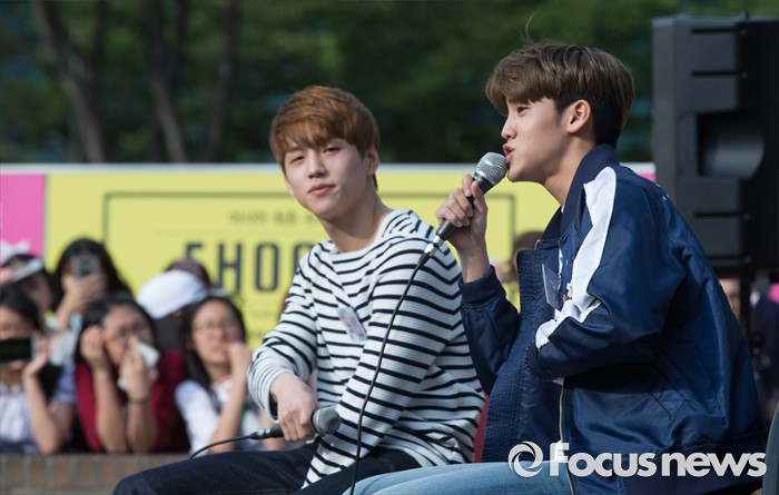 (서울=포커스뉴스) 3일 오후 서울 광진구 건대입구 스타시티 광장에서 가수 송유빈(오른족)이 거리공연을 하고 있다.
