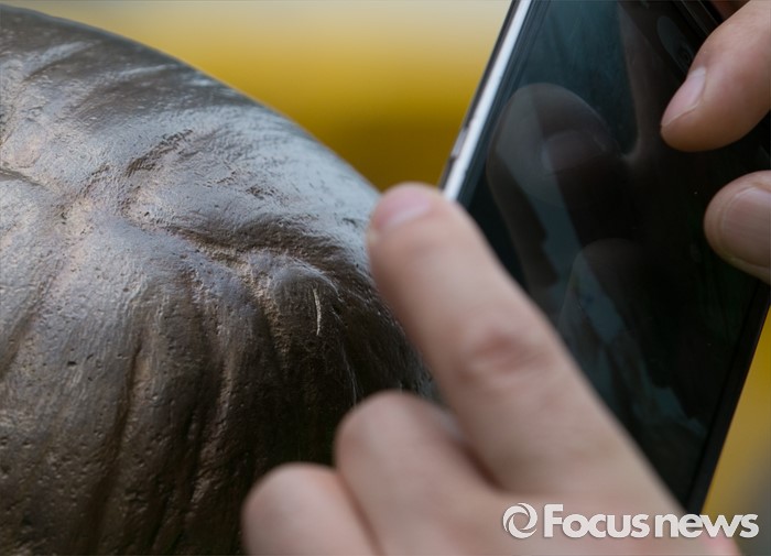 (서울=포커스뉴스) 3일 오후 서울 종로구 구 일본대사관 앞에서 농성 중인 한일 위안부 합의 폐기 및 소녀상 철거 반대 대학생행동 관계자들이 소녀상을 촬영하고 있다. 종로경찰서는 이날 낮 12시30분께 소녀상의 머리 부분을 약 40cm 길이의 망치로 수차례 내려친 A(33)씨를 현행범으로 체포해 조사하고 있다고 전했다.