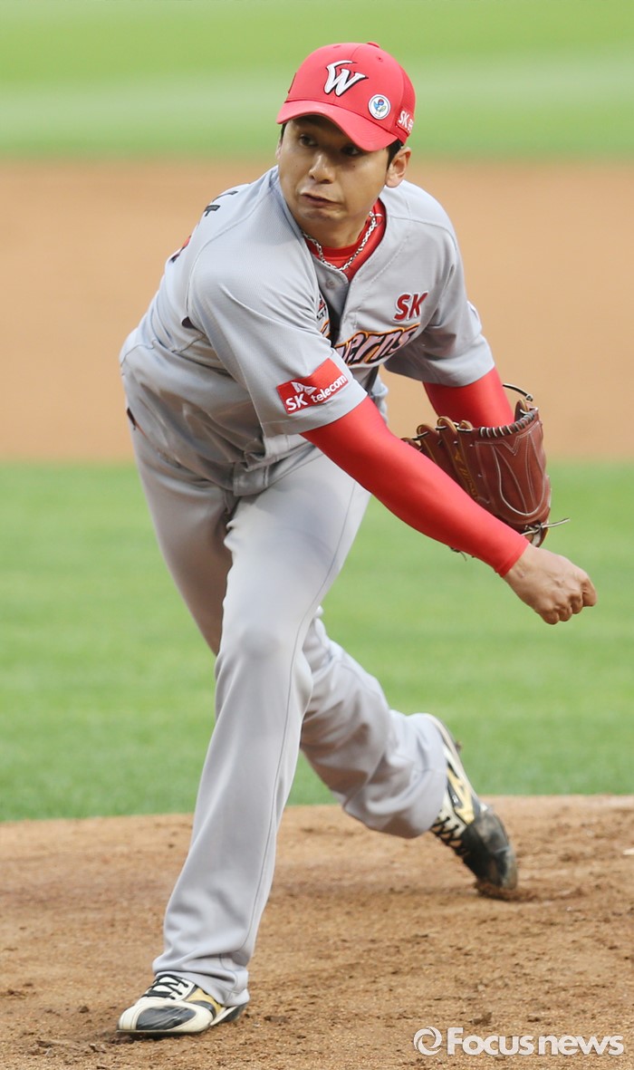 △ SK 선발투수 윤희상의 투구