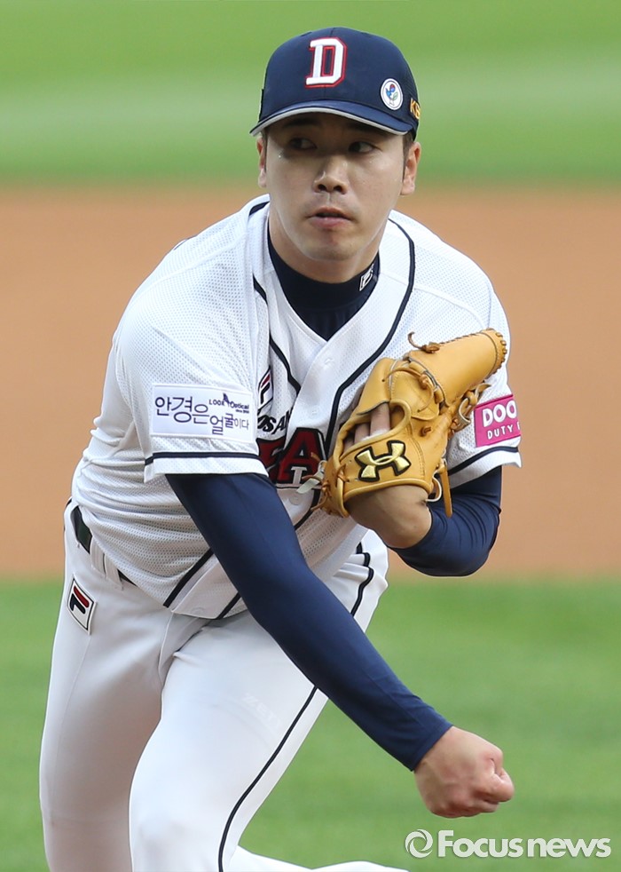 (서울=포커스뉴스) 3일 서울 잠실구장에서 열린 2016프로야구 SK-두산 경기에서 1회초 두산 선발투수 고원준이 투구하고 있다.
