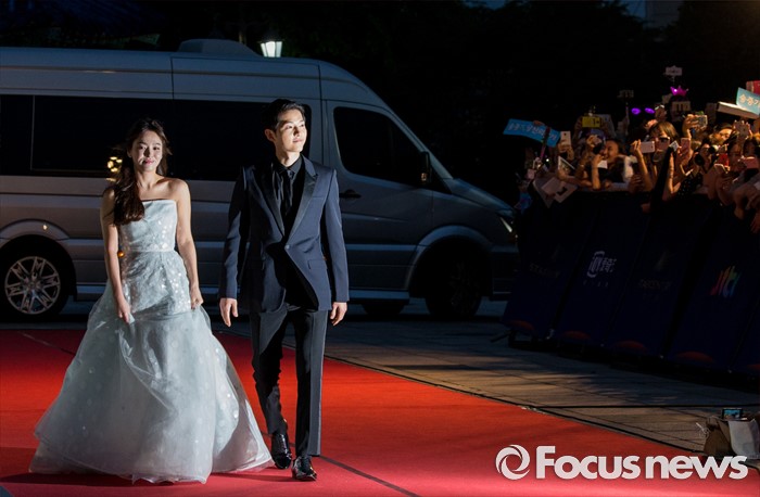 (서울=포커스뉴스) 3일 오후 서울 동대문구 경희대학교 평화의전당에서 열린 '2016 백상예술대상'에 참석한 배우 송중기-송혜교가 레드카펫을 밟고 있다.