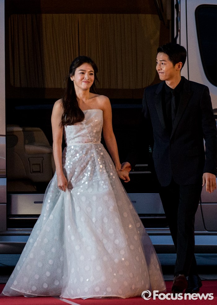 (서울=포커스뉴스) 3일 오후 서울 동대문구 경희대학교 평화의전당에서 열린 '2016 백상예술대상'에 참석한 배우 송중기-송혜교가 레드카펫을 밟고 있다.