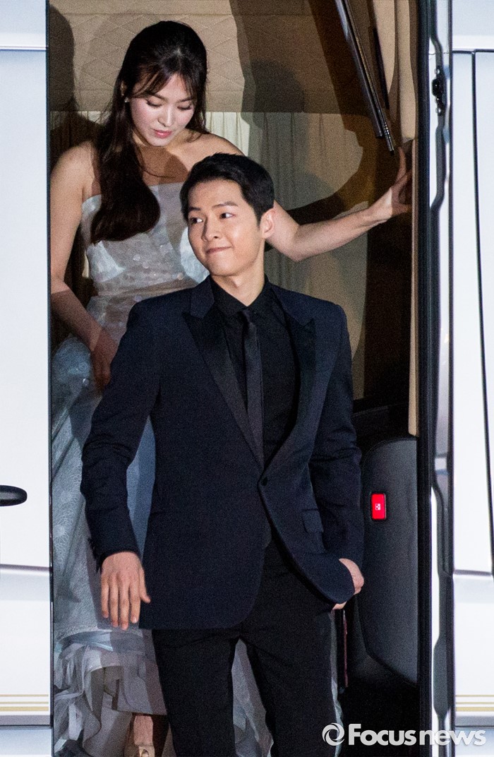 (서울=포커스뉴스) 3일 오후 서울 동대문구 경희대학교 평화의전당에서 열린 '2016 백상예술대상'에 참석한 배우 송중기-송혜교가 레드카펫을 밟고 있다.