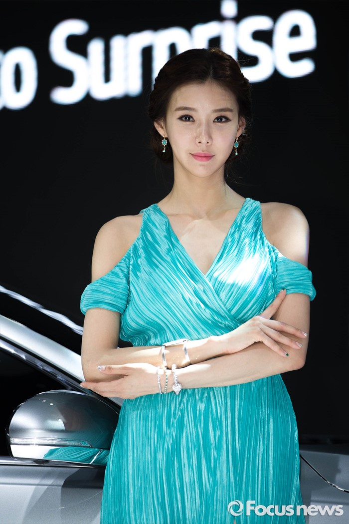 (부산=포커스뉴스) 3일 오후 부산 해운대구 벡스코에서 '2016 부산 국제모터쇼'가 공식 개막한 가운데 레이싱걸이 관람객들을 향해 포즈를 취하고 있다. 이번 국제모터쇼는 오는 12일 까지 계속 된다.