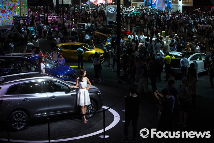 (부산=포커스뉴스) 3일 오후 부산 해운대구 벡스코에서 '2016 부산 국제모터쇼'가 공식 개막한 가운데 레이싱걸이 관람객들을 향해 포즈를 취하고 있다. 이번 국제모터쇼는 오는 12일 까지 계속 된다.
