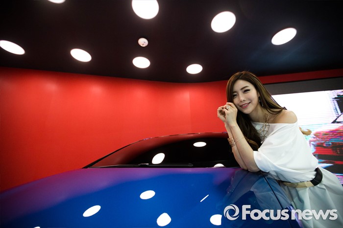 (부산=포커스뉴스) 3일 오후 부산 해운대구 벡스코에서 '2016 부산 국제모터쇼'가 공식 개막한 가운데 레이싱걸이 관람객들을 향해 포즈를 취하고 있다. 이번 국제모터쇼는 오는 12일 까지 계속 된다.
