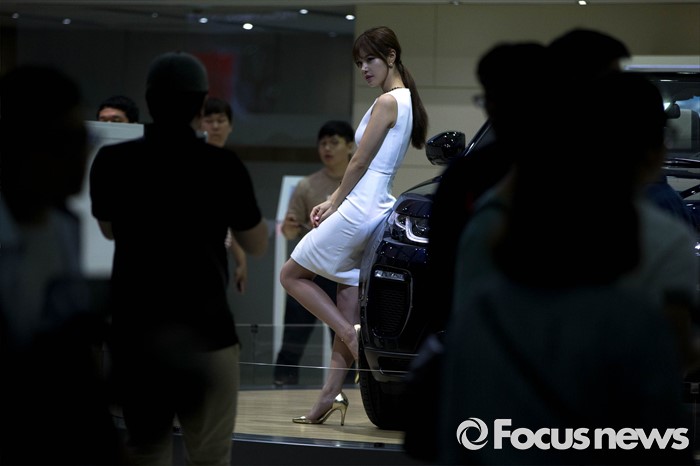 (부산=포커스뉴스) 3일 오후 부산 해운대구 벡스코에서 '2016 부산 국제모터쇼'가 공식 개막한 가운데 레이싱걸이 관람객들을 향해 포즈를 취하고 있다. 이번 국제모터쇼는 오는 12일 까지 계속 된다.