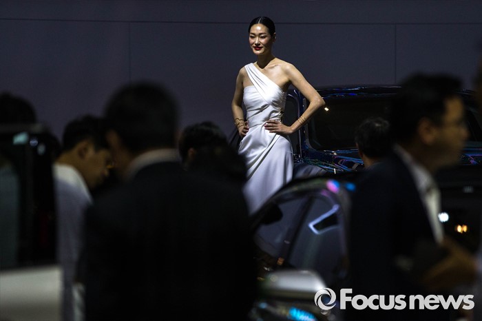 (부산=포커스뉴스) 3일 오후 부산 해운대구 벡스코에서 '2016 부산 국제모터쇼'가 공식 개막한 가운데 레이싱걸이 관람객들을 향해 포즈를 취하고 있다. 이번 국제모터쇼는 오는 12일 까지 계속 된다.