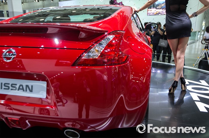 (부산=포커스뉴스) 3일 오후 부산 해운대구 벡스코에서 '2016 부산 국제모터쇼'가 공식 개막한 가운데 레이싱걸이 관람객들을 향해 포즈를 취하고 있다. 이번 국제모터쇼는 오는 12일 까지 계속 된다.