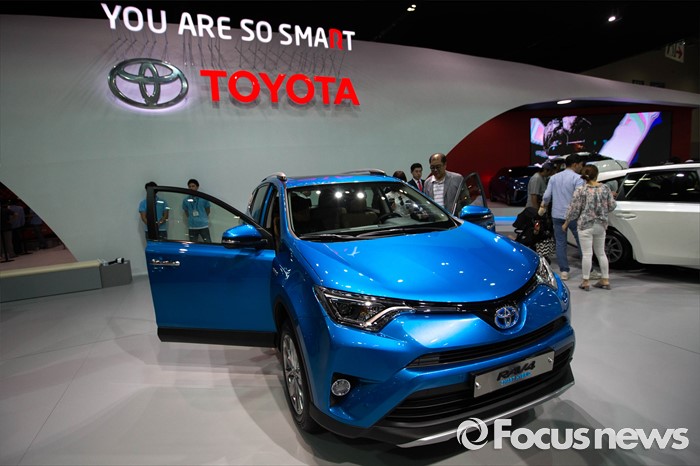 (부산=포커스뉴스) 3일 오전 부산 해운대구에 위치한 벡스코에서 열린 '2016 부산국제모터쇼'에 도요타 '라브4 하이브리드' 차량이 전시되어 있다.