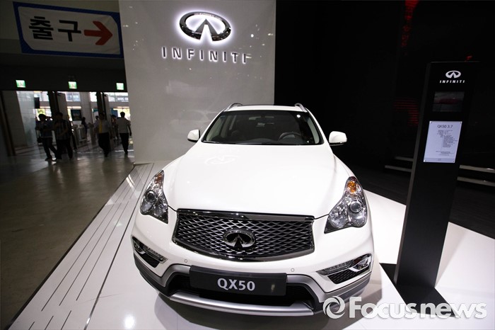 (부산=포커스뉴스) 3일 오전 부산 해운대구에 위치한 벡스코에서 열린 '2016 부산국제모터쇼'에 인피니티 'QX50' 차량이 전시되어 있다.