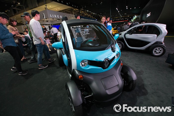 (부산=포커스뉴스) 3일 오후 부산 해운대구에 위치한 벡스코에서 열린 '2016 부산국제모터쇼'에 르노삼성의 초소형 전기차 '트위지'가 전시되어 있다.