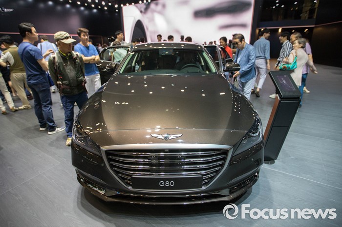 (부산=포커스뉴스) 3일 오후 부산 해운대구에 위치한 벡스코에서 열린 '2016 부산국제모터쇼'에 제네시스 'G80' 차량이 전시되어 있다.
