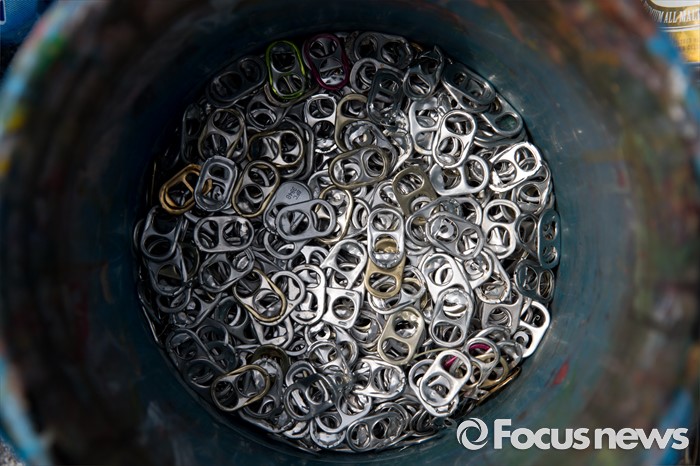 (서울=포커스뉴스) 4일 오후 서울 마포구 연남동 경의선 숲길에서 경의선 화물기차 만들기 행사에 쓰일 버려진 음료캔들이 놓여있다.