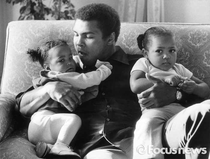 19th December 1978:Heavyweight boxer Muhammad Ali with his daughters Laila (9 months) and Hanna (2 years 5 months) at Grosvenor House.(Photo by Frank Tewkesbury/Evening Standard/Getty Images)