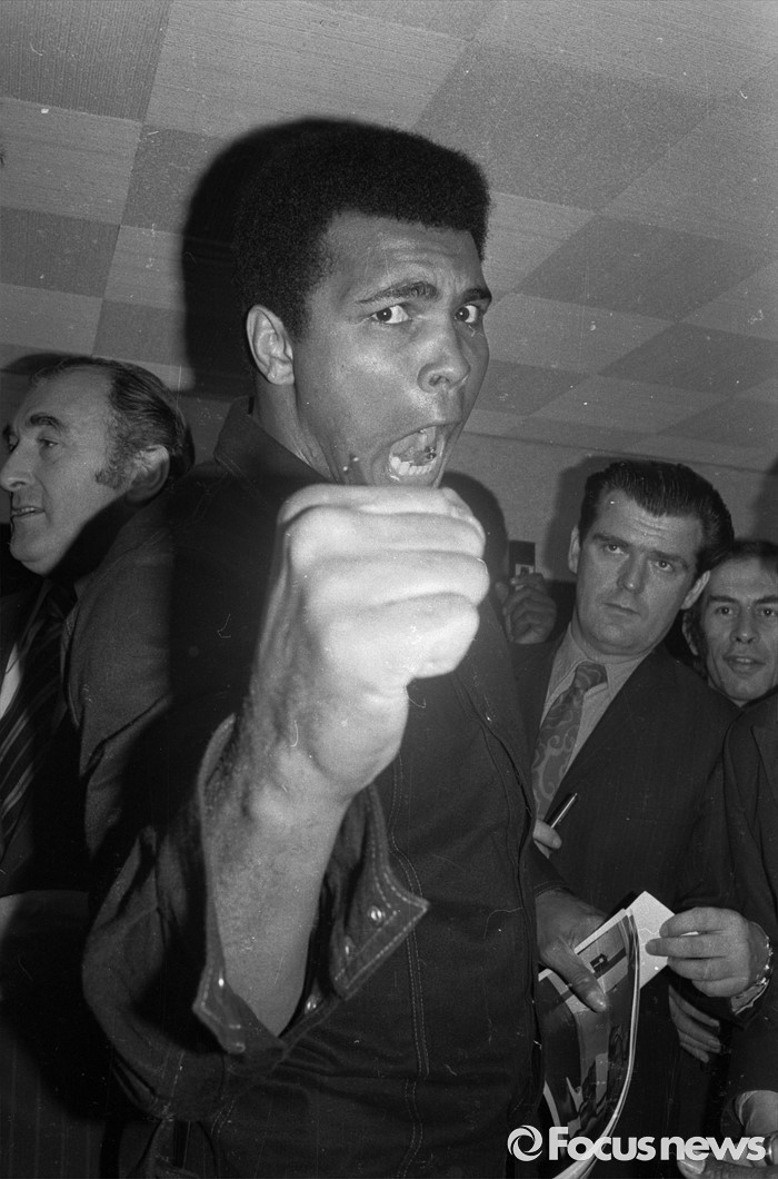 29th November 1974:American boxer Muhammad Ali, formerly Cassius Clay, strikes an aggressive pose at a press conference.(Photo by Harry Dempster/Express/Getty Images)
