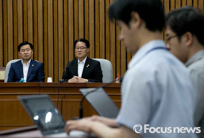(서울=포커스뉴스) 6일 오전 서울 여의도 국회에서 박지원 국민의당 원내대표가 20대 국회 원구성 협상 등과 관련 기자간담회를 하고 있다. 왼쪽은 김관영 원내수석부대표.