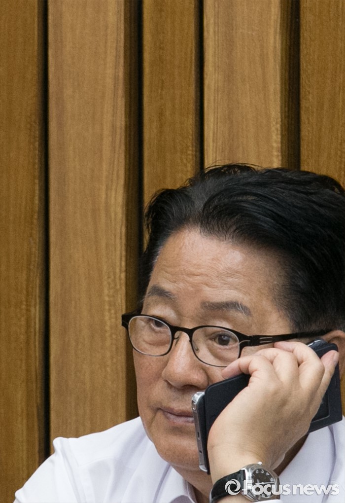 (서울=포커스뉴스) 6일 오전 서울 여의도 국회에서 박지원 국민의당 원내대표가 20대 국회 원구성 협상 등과 관련 기자간담회에 앞서 누군가와 통화를 하고 있다.