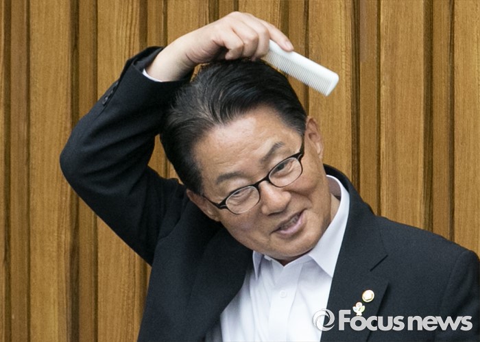 | △ 머리 빗질 박지원, '기자간담회 전 스타일 관리' |
