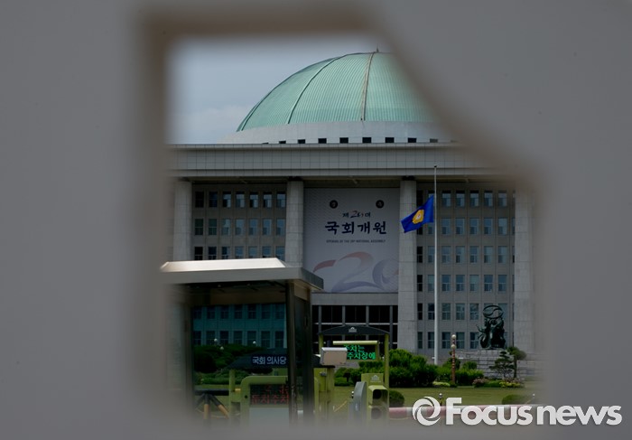 (서울=포커스뉴스) 20대 국회 원구성 법정 시한을 하루 앞두고 여야 공방이 이어지고 있는 6일 오후 서울 여의도 국회 정문 사이로 본청 모습이 보이고 있다.