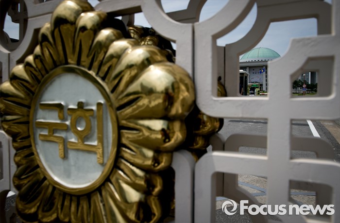 (서울=포커스뉴스) 20대 국회 원구성 법정 시한을 하루 앞두고 여야 공방이 이어지고 있는 6일 오후 서울 여의도 국회 정문 사이로 본청 모습이 보이고 있다.