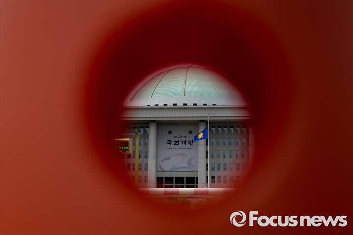 (서울=포커스뉴스) 20대 국회 원구성 법정 시한을 하루 앞두고 여야 공방이 이어지고 있는 6일 오후 서울 여의도 국회 앞 시설물 사이로 본청이 보이고 있다.