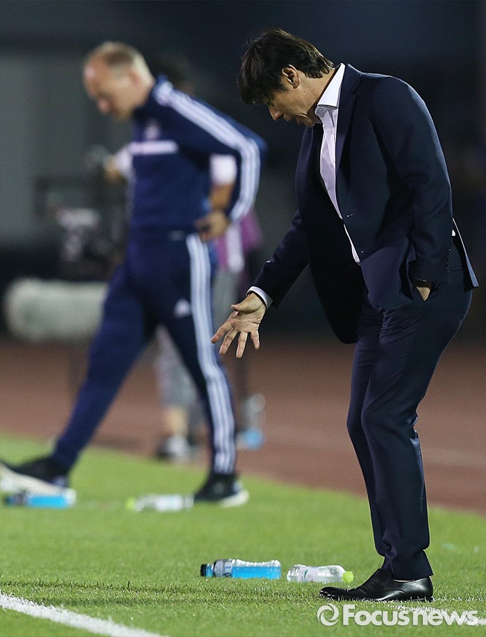 (부천=포커스뉴스) 6일 오후 경기 부천종합운동장에서 열린 2016 4개국 올림픽국가대표 축구대회 대한민국과 덴마크의 경기에서 대한민국 신태용 감독이 선수들에게 지시 하고 있다.