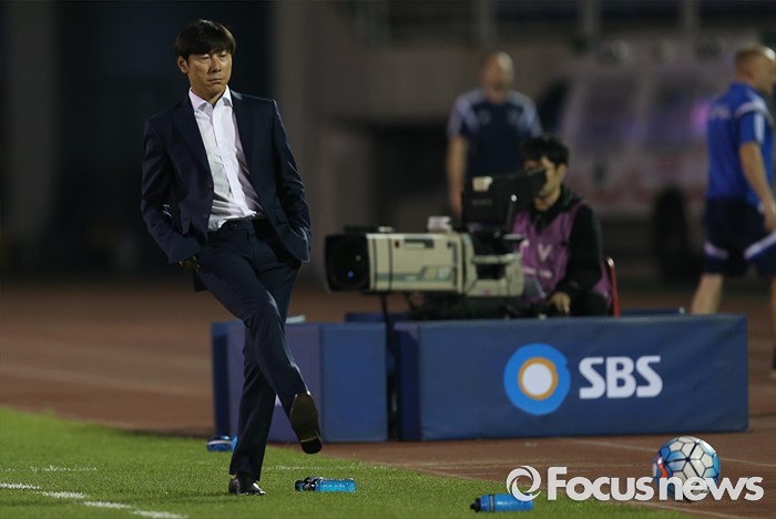 (부천=포커스뉴스) 6일 오후 경기 부천종합운동장에서 열린 2016 4개국 올림픽국가대표 축구대회 대한민국과 덴마크의 경기에서 대한민국 신태용 감독이 볼보이에게 볼을 패스하고 있다.