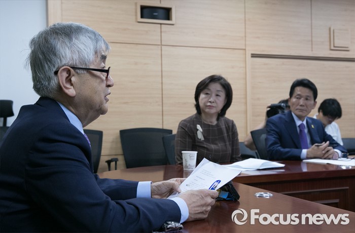 (서울=포커스뉴스) 7일 오전 서울 여의도 국회 의원회관에서 열린 정의당 광폭경청 초청강연에 참석한 최장집 고려대 명예교수가 발언하고 있다.