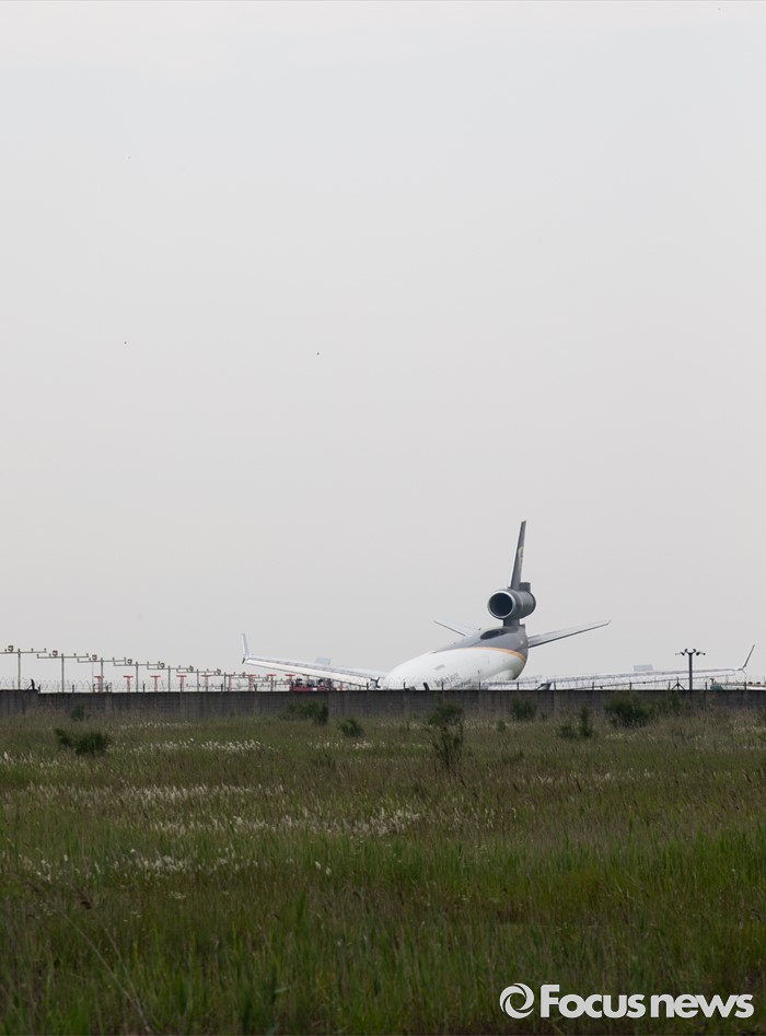 (영종도=포커스뉴스) 7일 오전 인천국제공항 활주로 부근에 UPS 소속 5X61편 화물기가 멈춰서 있다. 인천국제공항과 소방당국에 따르면 지난 6일 오후 10시 48분께 인천공항에서 미국 알래스카 앵커리지로 향할 예정이었던 화물기가 이륙 도중 바퀴가 파손돼 동체 앞 부분이 활주로를 부딪친 채 이동, 이륙에 실패했다고 밝혔다. 사고 직후 화물기에 탑승했던 조종사와 승무원 등 4명 모두 무사히 탈출한 것으로 알려졌다.