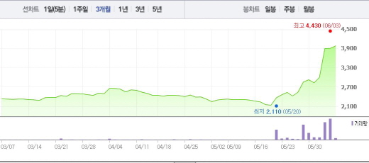 일신바이오는 3일 오전 9시16분 전일 대비 1.03%(40원) 상승한 3935원에 거래되고 있다. 일신바이오는 1일과 2일, 그리고 3일 매수세가 몰리면서 각각 5.83%, 29.88%, 0.13%의 상승폭을 나타냈다.