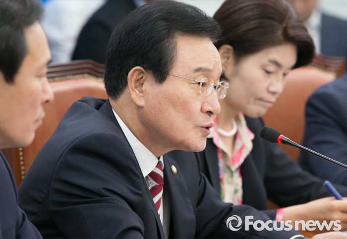 (서울=포커스뉴스) 7일 오전 서울 여의도 국회에서 열린 더불어민주당 원내대책회의에 참석한 변재일 정책위의장이 발언하고 있다.