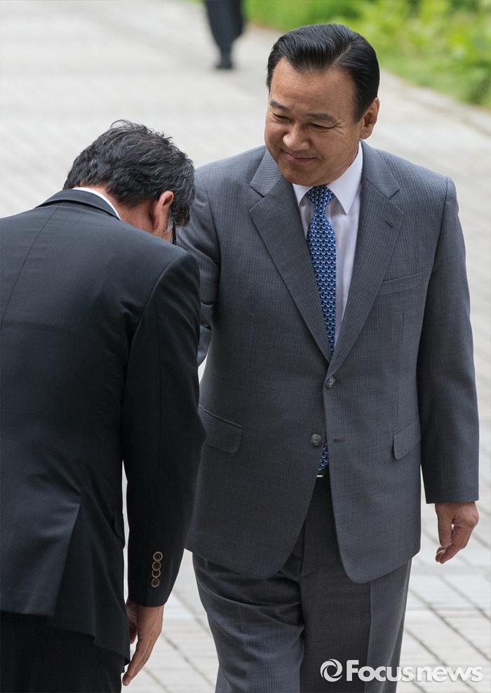 (서울=포커스뉴스) 고 성완종 전 경남기업 회장으로부터 불법정치자금 수수 혐의를 받고 있는 이완구 전 국무총리가 항소심 3차 공판을 위해 7일 오전 서울 서초구 서울고등법원으로 들어서며 지지자와 인사하고 있다.