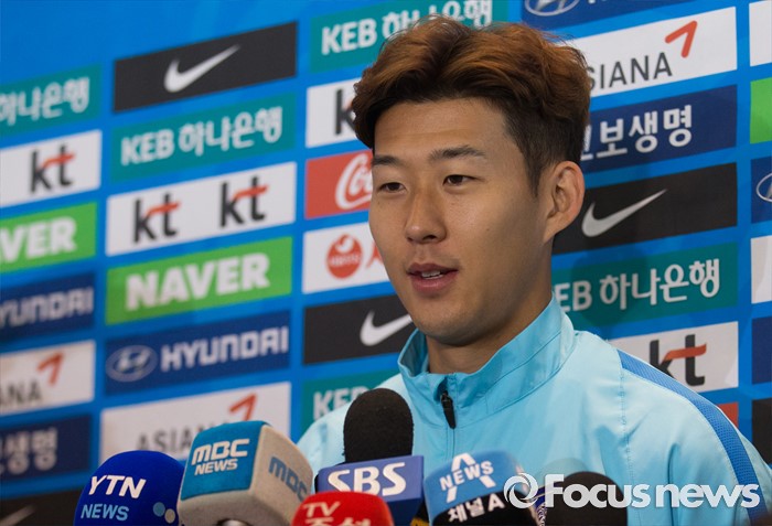 (인천공항=포커스뉴스) 유럽 원정에 나서 두 차례 평가전을 치러 1승 1패(스페인 1-6패, 체코 2-1승)를 거둔 대한민국 축구 국가대표팀 손흥민이 7일 오후 인천국제공항을 통해 귀국 후 취재진 질문에 답하고 있다.